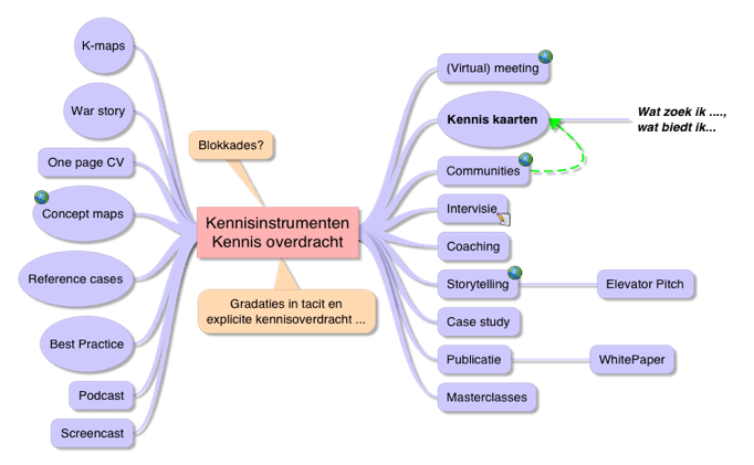 Kennisinstrumenten: middelen om op verschillende manieren, van expliciet naar tacit, kennis over te brengen: