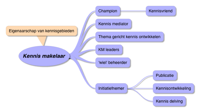 De kennismakelaar. Als makelaar ben je geen eigenaar ( van kennis) maar faciliteren je de kennisontwikkeling / deling via de hierboven weergegeven kennis instrumenten: