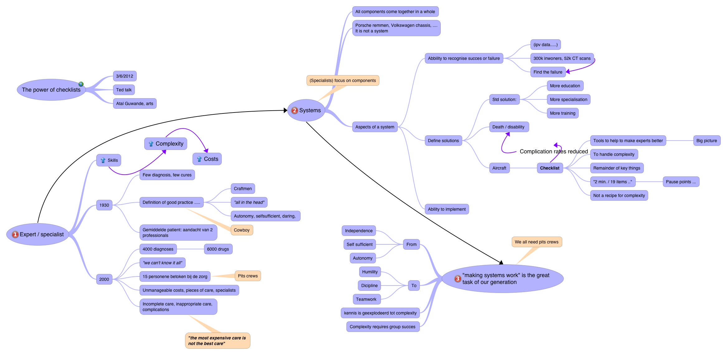 Dit is een mindmap gebaseerd op een erg leuke TED-talk van Atul Gawande die het kijken meer dan waard is! Net als een piloot een checklist zouden ook chirurgen met checklist moeten werken.