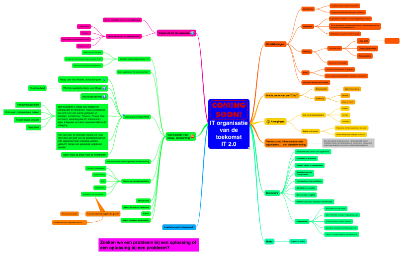Hoe kijk jij tegen de IT-organisatie van de toekomst aan? Wat zijn jouw ideeën / links of aanvullende info? Voeg ze toe als comment en ik verwerk ze in de mindmap….
