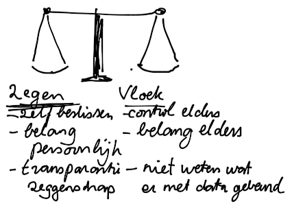 Zou het niet veel beter zijn als een ieder zelf kan besluiten om persoonlijke data te delen? Eigenlijk wil je een soort van ‘privat big data cloud’ waar je zelf heer en meester bent en de beslissingen kunt nemen. Dus wel afspraken over normalisatie van de data maar de sleutel blijft bij het individu!