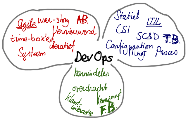 Eigenlijk combineert DevOps de werelden die met een technische / systeembril worden bekeken met de wereld die door een proces-bril wordt beschouwd, sterker ook kennismanagement kan men onder de DevOps paraplu scharen. Door als laatste agile aspecten te integreren lijkt de ultieme manier van werken voor IT te gaan ontstaan en wordt de cirkel wellicht rond ….