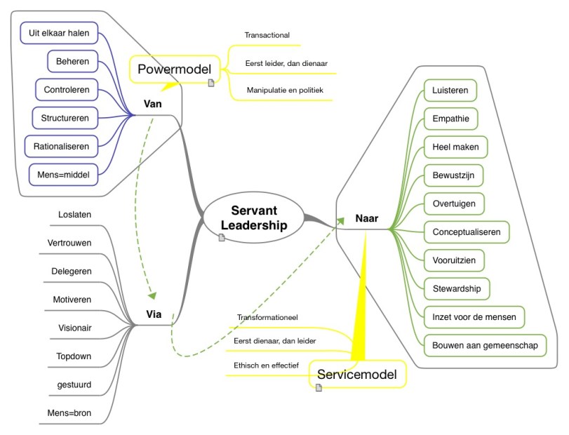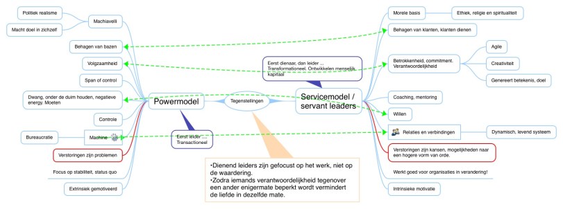 Wat mij betreft is Command en Control / ‘het Powermodel’ in een werkomgeving van kenniswerkers steeds minder het model waarmee organisaties geleid zouden moeten worden. Dienend Leiderschap heeft wat mij betreft de toekomst. IK heb weer een gedachteplaat gemaakt over Servant Leadership. Bijgaand enkele highlights: