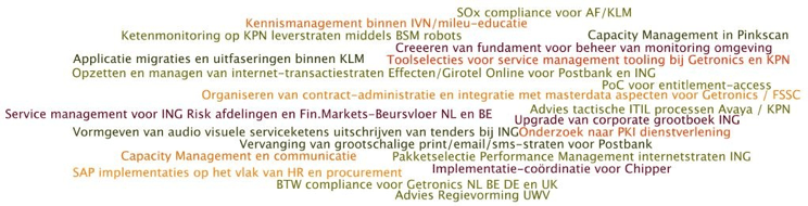 Ik ben een trouble shooter / een organisator van oplossingen in ambivalente / complexe situaties. Ik organiseer de flow van data, informatie, kennis, applicaties en/of (samen)werk(ing) tot werkbare en bruikbare oplossingen.